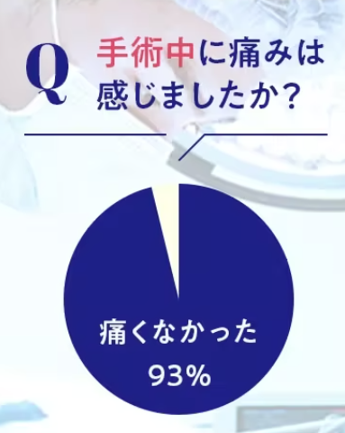 包茎手術と聞くと、真っ先に「痛そう」というイメージをお持ちの方が多いのは事実です。やはり痛みを感じやすい敏感な場所ですから、そう考えるのも無理はありません。メンズライフクリニックではデリケートな手術に対応する為、段階的に麻酔をおこない、痛みを感じにくくなる工夫をしています。それにより93%の男性が「痛くなかった」と手術後にご回答いただいています。